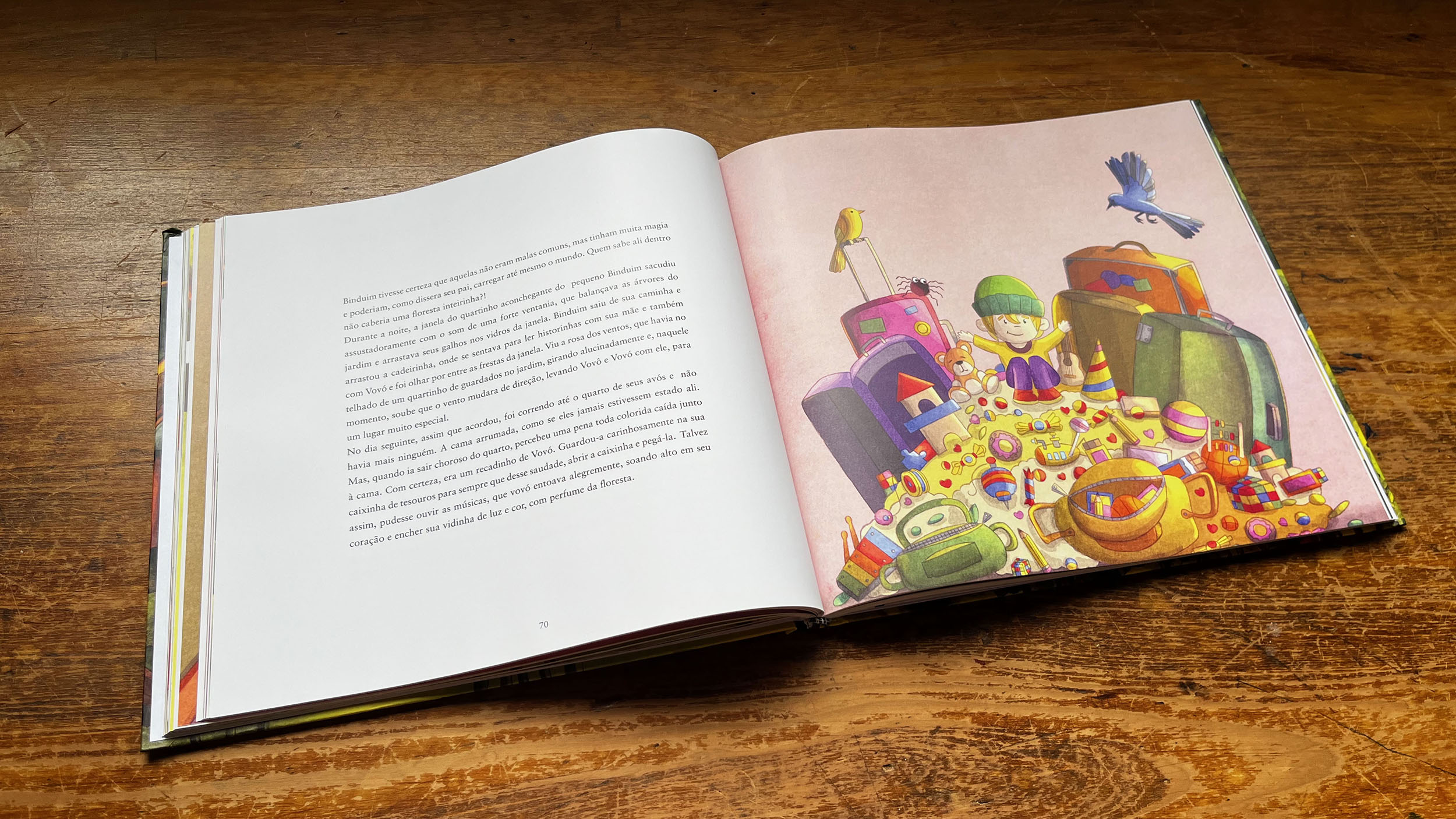 As ilustrações dialogam diretamente com o texto, ampliando suas camadas emocionais e ajudando a conduzir o leitor pela jornada interna de Binduim. Texto e imagem caminham juntos, respeitando o ritmo poético da obra e o olhar sensível da infância.