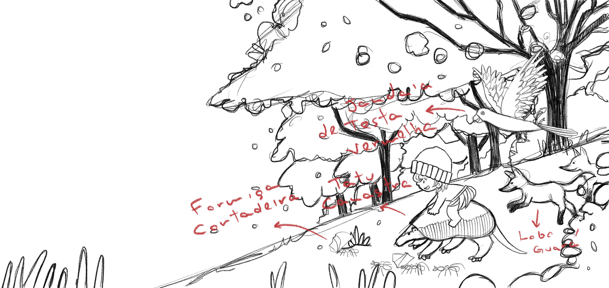 O processo teve início com a apresentação do conceito e o estudo de personagem, aprovados previamente pela autora. A partir daí, foram desenvolvidos os esboços já aplicados ao projeto gráfico, seguidos pela definição da paleta de cores, finalização das ilustrações e preparação da arte final para impressão.